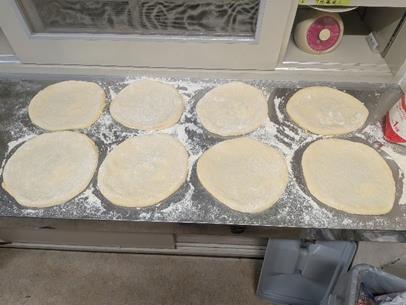 第一難関は、生地を以下に円い型に仕上げるか。延ばし過ぎると穴が開くし、楕円になる。さっとできる人もいれば、なかなかできない人もいて、実に愉快です。